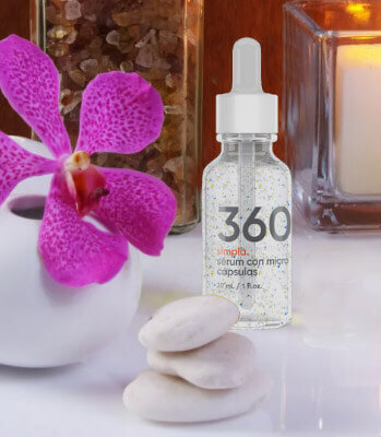 La serum Simpla 360 estimula la producción natural de colágeno, alisa las arrugas, restaura la elasticidad de la piel y tensa el óvalo facial.